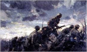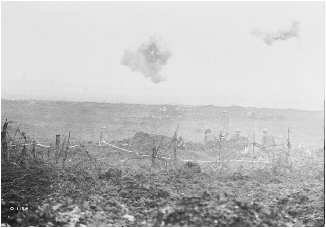 Soudainement, l’ennemi se manifeste dans le secteur. Après un violent barrage d’artillerie qui dure de longues minutes, Kaeble se redresse péniblement dans ce qui reste de sa tranchée. Il constate qu’autour de lui que tous les soldats de sa section sont morts ou blessés. N’ayant pas le temps de s’apitoyer, ni de faire le bilan des dégâts, et encore moins d’aller quémander du renfort au bataillon avec lequel il a perdu contact, il doit prendre une décision. Il a devait lui l’armée allemande qui avance au pas de charge. Combien sont-ils devant? Au moins cinquante, peut-être cent.