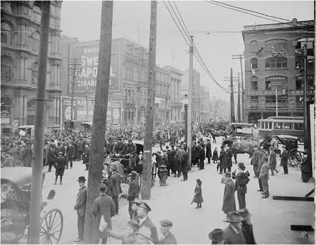 Pour comprendre le contexte dans lequel s’écoule l’année 1917 pour le Canada, nous ouvrons une brève parenthèse sur la question du service militaire obligatoire. Rappelons que les succès des Canadiens sur les champs de bataille d’Europe avaient néanmoins coûté très cher en vies humaines, si bien que la lassitude et un certain écœurement de la guerre finit par atteindre les Canadiens, en particulier la population civile.
