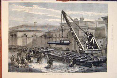 L’un des plus importants arsenaux établis selon ces quelques règles était celui de Woolwich au sud de Londres, qui était probablement l’une des plus imposantes structures recouvertes d’un toit à l’époque de la révolution industrielle. L’arsenal de Woolwich était équipé de quatre immenses fours à métaux. Le plus imposant de ces fours pouvait fondre un bloc métallique pouvant peser jusqu’à 16 tonnes et produire des canons de la plus haute qualité. Le site même de Woolwich hébergea une variété d’arsenaux remontant jusqu’à l’époque des Tudor, connu alors sous le nom de Royal Laboratory Carriage Department, puis il fut rebaptisé Royal Arsenal sous le règne de George III en 1805.