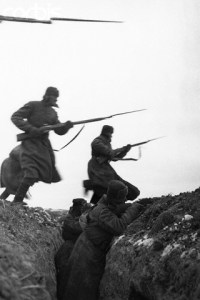 Représentation artistique d'un combat sur le front de l'Est. Hiver 1941-1942.