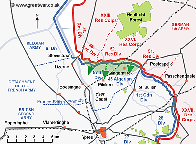 Le premier mois passé au front fut relativement tranquille et la division canadienne fut transféré au nord en Belgique, dans le secteur du saillant d’Ypres. La division canadienne releva la 11e Division de l’armée française, qui se trouvait à l’extrême gauche de la ligne de front occupée par l’armée britannique en Belgique. La division canadienne avait dans un premier temps été assignée au Ve Corps de la Seconde armée britannique. À la droite des Canadiens se trouvait la 28e Division britannique, à la gauche la 45e Division algérienne de l’armée française.