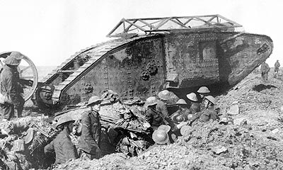 Un exemple de char d'assaut britannique fourni aux Canadiens sur la Somme. Les soldats du 22e bataillon avaient surnommé l'un d'eux "Crème de menthe".