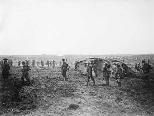 Guidées par des piquets de peinture marquée, les compagnies d’infanterie de tête franchirent la dévastation du No Man’s Land, se frayant un chemin à travers les trous d’obus et les tranchées brisées. Elles étaient lourdement chargées. Chaque soldat portait au moins 32 kilos de matériel, ainsi que, selon certains, le même poids de la boue omniprésente sur les uniformes et les équipements.