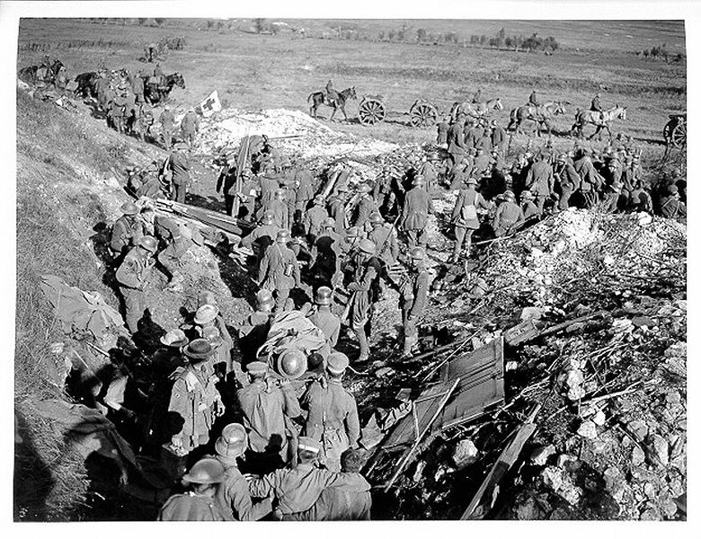 La bataille du Canal du Nord débuta le 27 septembre 1918 à 5h20 par le feu concentré de centaines de canons qui pilonnèrent directement les positions allemandes sur l’autre rive. L’assaut s’effectua par l’avance conjointe des 1ère et 4e Divisions qui suivaient de très près le barrage d’artillerie.