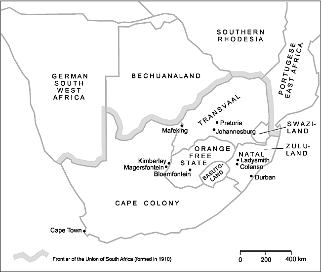 La Seconde Guerre des Boers débuta en octobre 1899. Des milices boers totalisant 40,000 hommes investirent des garnisons frontalières britanniques à Kimberley et Mafeking, puis elles envahirent la colonie du Natal (voir la carte), parvenant aussi à encercler une force britannique à Ladysmith en novembre. La situation initiale sur le terrain était confuse, car à la guerre conventionnelle s’adjoignait une guerre civile. En effet, des centaines de colons du Cap prirent les armes du côté des Boers, de même que des milliers d’uitlanders formèrent des régiments pour combattre aux côtés des forces régulières britanniques. D’autres contingents, plus petits, provenant de l’Australie, du Canada et d’autres parties de l’Empire participèrent au conflit sur une base volontaire (bien qu’elles se trouvaient automatiquement en guerre de par le statut de Dominions semi-indépendants).