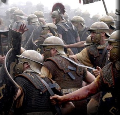 Reconstitution tirée de la télésérie "Rome" produite par HBO. Des légionnaires romains en Gaule vers 52 avant J.-C.