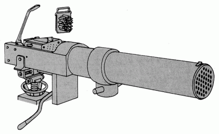Pour sa part, la mitrailleuse Lowell disposait de quatre canons avec une alimentation en cartouches similaire à la Gardner mais, en dépit de quelques ventes à la Russie et à la marine américaine, l’arme ne fut jamais une réussite. Quant à la Nordenfelt, celle-ci était généralement constituée de dix canons alignés parallèlement, mais leur nombre pouvait varier. Certains modèles de mitrailleuses Nordenfelt alignaient deux canons, d’autres pouvaient en utiliser douze. L’alimentation en cartouches s’opérait par la gravité, avec une trémie installée au-dessus de l’arme, le tout actionné par l’habituelle manivelle.