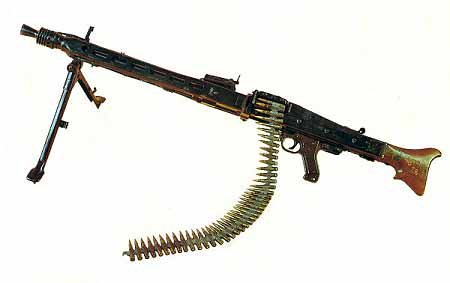 La terrible MaschineGewehr 42 capable de tirer un maximum de 1,200 coups à la minute. Nombre de mitrailleuses actuellement utilisées dans les armées du monde sont inspirées de ce modèle de la Seconde Guerre mondiale.