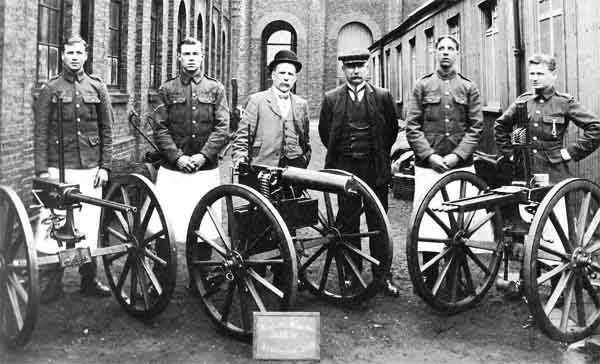 Les Britanniques modifièrent la mitrailleuse Maxim afin d’adapter le canon pour accueillir la cartouche de calibre .303. Autrement dit, l’armée britannique allait acheter des mitrailleuses Maxim et en faire une arme d’ordonnance en 1889 et doter les premiers bataillons deux années plus tard. Pour leur part, les Allemands allaient également faire l’achat de la Maxim en 1899, de même que la Russie. Ces deux nations avaient acheté la licence afin de manufacturer cette mitrailleuse et la Russie fut la première à l’utiliser lors de la guerre contre le Japon en 1904-1905, avec des effets dévastateurs chez l’ennemi.