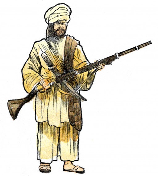 Un combattant afghan à l'époque de la Seconde Guerre anglo-afghane (1878-1880).