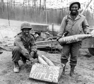 Sur les 16 millions d’Américains ayant porté l’uniforme au cours de la Seconde Guerre mondiale, environ 900,000 étaient de race noire. En 1945, la marine avait accordé des commissions d’officiers à des Noirs, de même que l’aviation avait admis dans ses rangs des officiers noirs qui s’entraînaient pour devenir pilotes à l’Institut Tuskegee situé en Alabama. Pour la première fois, des Noirs allaient voler dans des escadrons de combat en Europe, même que l’un d’eux, Benjamin O. Davis Sr., allait être promu au rang de brigadier-général d’aviation. D’autres Noirs, ceux-ci des fantassins, allaient également combattre au front, ce qui fut particulièrement le cas lors de la bataille des Ardennes (1944-1945).