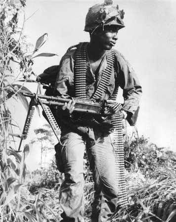 Au cours des années 1960 et 1970, de plus en plus d’Afro-Américains obtinrent des commissions d’officiers et ils bénéficièrent d’un traitement plus équitable quant aux possibilités de promotion. Lors de la guerre du Vietnam, alors que les Noirs représentaient environ 12% de la population américaine, ceux-ci constituaient 12% des effectifs engagés et ils représentèrent en fin de compte 12% des pertes au combat.