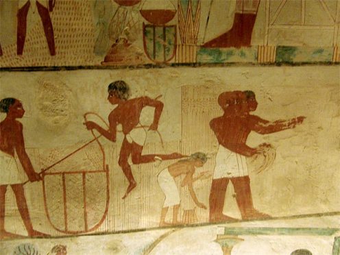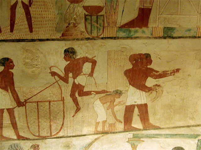 Cela signifiait que l’amélioration de la production au-delà du niveau de subsistance devait régulièrement passer par l’expropriation, voire le pillage par un évident recours à la force. Avec le temps, cela signifia, par exemple dans l’Égypte ancienne et la Mésopotamie, que l’incapacité des fermiers à accroître la productivité et les capacités d’entreposage força les classes dirigeantes grandissantes à exproprier, soit par une hausse de taxes ou le vol, les réserves alimentaires nécessaires pour leur maintien au pouvoir.