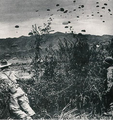 En pleine guerre d'Indochine, la France n'hésita pas à employer ses parachutistes lors de batailles cruciales, notamment à Diên Biên Phu au printemps de 1954.