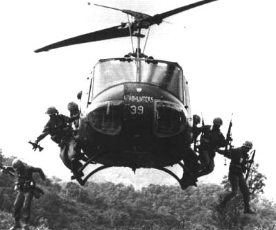 Cela fut particulièrement vrai lors de la guerre du Vietnam, où ni les rizières du delta du Mékong, ni les rares plaines vers le nord du pays ne permettaient quelconque largages traditionnels à grand déploiement. Cependant, des améliorations dans les capacités de transport des hélicoptères, entreprises depuis la guerre de Corée, firent en sorte qu’il était désormais possible de déployer de forts contingents de soldats et de matériels dans un pays où les routes étaient rares et souvent interdites d’accès par les guérillas du Viet Cong ou les détachements de l’armée régulière nord-vietnamienne.