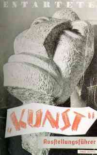 Page-couverture du catalogue de l'exposition "Entartete Kunst" du 19 juillet 1937 à Munich. Selon les onze villes d'Allemagne et d'Autriche visitées en 1937 et 1938, cette exposition rassembla en moyenne entre 650 et 750 oeuvres d'artistes prohibés par le régime national-socialiste.
