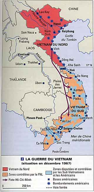 NAM constitue le fragment d’un nom propre, voire une expression devenue emblématique d’une guerre qui déchira pendant une vingtaine d’années l’Asie du Sud-est. Officiellement, la Guerre du Vietnam fut une continuation de la Guerre d’Indochine de 1945 à 1955. En effet, la Conférence de Genève de 1954 mit un terme à ce dernier conflit, en accordant la pleine indépendance au Laos et au Cambodge, tout en faisant du Vietnam un État temporairement séparé par une zone démilitarisée à la hauteur du 17e parallèle. Dans la partie nord du pays, la République démocratique du Vietnam (RDV) fut établie sous la ferme direction d’un communiste habitué aux longues luttes, Ho Chi Minh. Au sud, l’État du Vietnam de l’ancien empereur Bao Dai constitua la principale autorité.