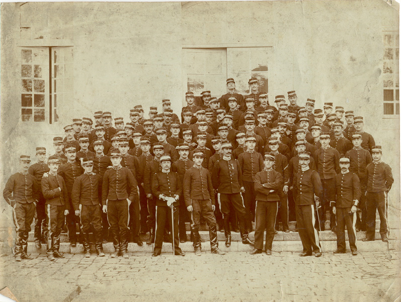 Un groupe d'élèves-officiers de l'école militaire de Saint-Cyr au tournant du XXe siècle. Fondée en 1802 sous Napoléon Bonaparte, la devise actuelle de l'institution est: "Ils s'instruisent pour vaincre".