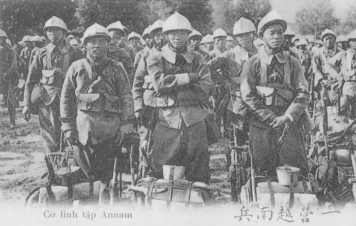 Comme bien des empires coloniaux, la France n'hésita pas à enrôler de force les habitants de ses territoires outre-mer qui servirent dans les grands conflits qu'elle livra au XXe siècle. Ici, des tirailleurs annamites.