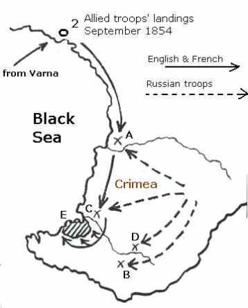 Dans ce contexte, les combats de la Guerre de Crimée furent d’une rare violence selon les standards de l’époque. À titre d’exemple, la bataille de l’Alma du 20 septembre 1854 fut la première à voir l’utilisation de mousquets à canons rayés, même si ce furent seulement les forces franco-britanniques qui en disposèrent. Combiné à leurs habiletés tactiques supérieures et à leur sens de l’initiative, cet avantage technique donna aux Alliés le tempo nécessaire pour repousser les Russes hors d’une position stratégique fortifiée située au nord de Sébastopol. Fixés au nord de la ville, les Russes se replièrent au sud, si bien que les Alliés maintinrent la pression à partir du nord, essentiellement pour éviter une rupture des communications dans leur chaîne de commandement. Par la suite, tout en ayant réussi à fixer les Russes au nord de la ville, les Alliés disposèrent de suffisamment de troupes pour entreprendre l’encerclement de Sébastopol et ainsi faire un siège en bonne et due forme.