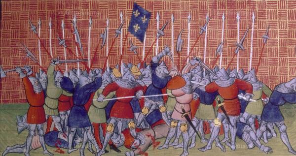 La victoire des forces flamandes à Courtrai (Belgique) en 1302 souleva des doutes quant à l'efficacité de la cavalerie à percer de front une troupe ennemie à pied, déterminée et bien équipée. Sans totalement remettre en question l'utilité de la cavalerie, Courtrai envoya le signal qu'il fallut repenser son utilisation pour les batailles futures.