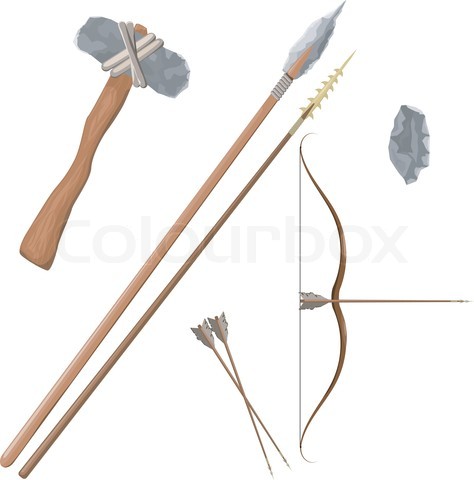 L’idée même de causer davantage de dégâts à l’adversaire l’amena à développer d’autres techniques, comme le jet de pierres, où la portée s’allie à la force. L’Homme parvint également à affuter ses bâtons et à procéder à de premiers assemblages, comme le fait de combiner le bâton avec une pierre aiguisée et utiliser le tout soit comme une masse ou comme une lance.