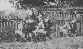 Cela dit, la guerre qui débuta en août 1914 vit une avancée rapide des forces allemandes en Belgique. À cet égard, les Allemands purent compter sur une formidable artillerie lourde spécialement affectée à la réduction des puissantes forteresses belges. La voie étant ainsi dégagée, l’armée allemande put rapidement marcher sur la Belgique, face à une armée belge qui ne fut pas en mesure d’arrêter un ennemi aussi puissant. Les Belges se replièrent vers l’ouest pour s’établir le long d’une mince bande côtière autour de la ville d’Ypres. Malgré la défaite, cette détermination affichée par la petite armée belge, combinée à la résistance active et passive de la population civile et l’arrivée de l’armée britannique, fut l’un des éléments qui entravèrent sérieusement l’horaire rigide du Plan Schlieffen, avant même que les Allemands ne marchent sur la France.