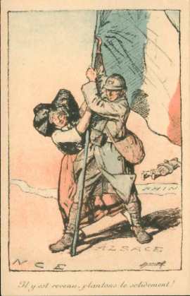 La réapparition du danger allemand depuis 1905 est également accompagnée d’un relent de la question des provinces perdues que sont l’Alsace et la Lorraine. Bien que les divisions politiques affaiblissent le gouvernement français, il y a cependant un certain consensus entre les nationalistes de gauche et de droite, qui veulent tous profondément récupérer ces territoires perdus depuis 1871. Le point en litige réside dans la manière d’y parvenir.