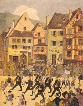 En 1911, la relance de la question des provinces perdues est due en partie au fait que l’Allemagne veut réorganiser tout son empire, lui redonner de nouvelles structures politiques et administratives (25). Jusque-là tout va bien, mais l’Allemagne adopte une politique de « germanisation » de l’Alsace-Lorraine. Les nationalistes français n’approuvent pas les abus supposés des Allemands afin d’imprégner ces régions de leur culture. L’affaire de Saverne en 1913 accroît les débats, car un officier allemand aurait porté la main sur un Alsacien-Lorrain refusant de le saluer (26). C’est dans un esprit de revanche, suscité par cet exemple, que les nationalistes de droite entretiennent leurs idéologies favorables à la reconquête des deux provinces.