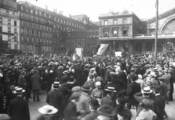 Par conséquent, l’année 1914 marqua un grand tournant chez les nationalistes français. La peur de l’Allemagne se concrétise le 3 août lors de la déclaration de guerre. Même si l’on devine un conflit à l’horizon depuis 1905, une atmosphère de détente règne en France (30). C’est par le ralliement à la guerre des extrémistes de droite et de gauche, sous le gouvernement de la République, qu’on assiste à la fin des divisions nationalistes et à la naissance de l’Union sacrée (31).