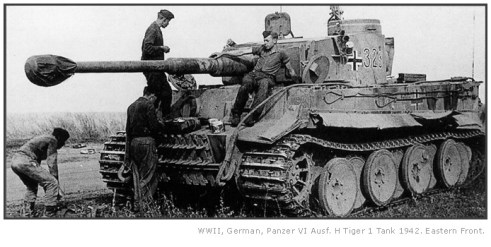 Symbole fort de la Seconde Guerre mondiale, le char d’assaut (ici un char allemand Tigre I) représente une arme de destruction redoutable qui révolutionna les pratiques de la guerre, forçant les attaquants et les défenseurs à revoir en profondeur leurs tactiques pour mieux s’adapter face à ces monstres d’acier.