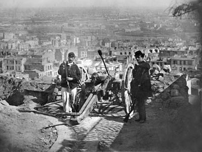 Le front à Paris détermine la stratégie des Gardes nationaux. Ses ponts, ses rues et ses immeubles sont plus ou moins exposés aux attaques versaillaises selon l’endroit où l’on se trouve. C’est dans cet espace urbain de barricades, de tranchées et de fortifications que le Comité central organise, en misant sur le contrôle total de la Garde nationale, la défense de la capitale, sans toujours se soucier des décisions de l’Hôtel de Ville. Le 27 mars 1871, il indiquait déjà ses intentions en matière de défense: « Le Comité central (…) représente la force militaire. (…) il lui appartient de faire l’organisation de la Garde nationale, d’en assurer le fonctionnement, et de proposer à l’acceptation de la Commune toutes les mesures politiques et financières nécessaires à la mise à exécution des décisions prises par le Comité. »