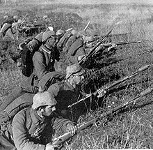 Des soldats allemands attendent un assaut de l'armée française. Bataille de la Marne (septembre 1914).