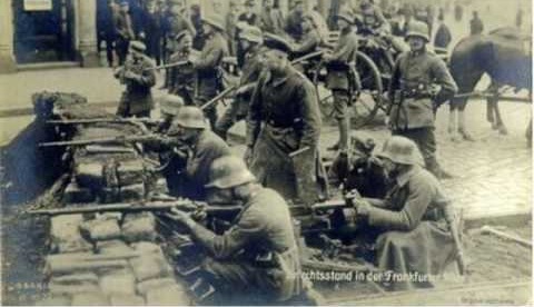 Des combattants d'une unité des Freikorps lors de la révolution en Allemagne vers 1919-1920.