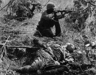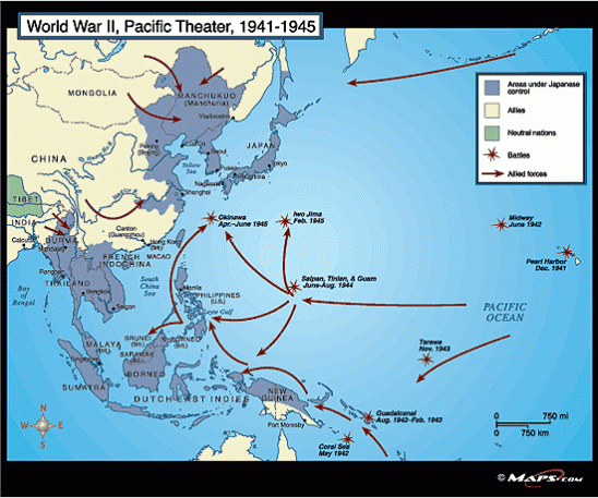 Par ailleurs, les Marines eurent recours à des techniques innovatrices d’assaut amphibie afin de capturer des bases stratégiques du Pacifique, et ce, de manière plus rapide et efficace que ce que les études d’avant-guerre sur le sujet l’avaient laissé entrevoir. Qui plus est, les sous-marins américains causèrent des ravages dans la flotte marchande nipponne qui ne s’en remit jamais, ni ne put enrayer la menace. Par contre, sur terre, les forces japonaises résistèrent obstinément, de manière telle que la littérature présente régulièrement cette forme de résistance comme étant du fanatisme.