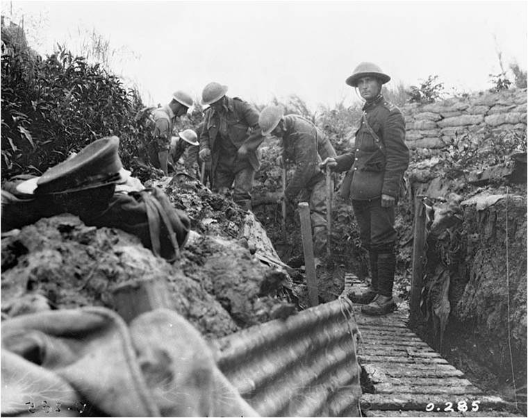 Entre les mois d’août et de novembre 1918, le Corps canadien ne connut pratiquement aucun répit. C’est ce qu’on appelle la période des « Cent-Jours ». À titre d’exemple, un soldat canadien sur cinq tomba au cours de l’unique campagne des Cent Jours. Lors des premiers jours de la campagne, le Corps canadien connut un taux de pertes d’environ 45 %.