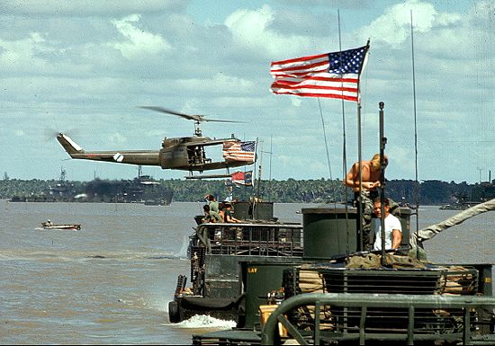 Durant la Guerre du Vietnam, ce fut l’hélicoptère qui révolutionna les tactiques d’artillerie, comme ce fut le cas pour celles de l’infanterie. Avec leurs capacités de vol stationnaire, les hélicoptères constituèrent une plate-forme d’observation idéale, comme ils furent employés afin de transporter des pièces légères comme l’obusier de 105mm et ses munitions dans des endroits difficilement accessibles. Toujours au Vietnam, les hélicoptères donnèrent un nouveau visage à l’artillerie, puisqu’ils disposaient de lances-roquettes et de lances-grenades automatiques qui peuvent entrer dans la catégorie de l’artillerie aérienne.